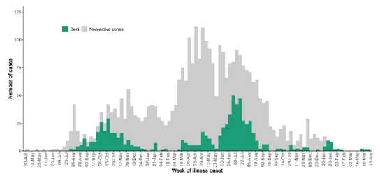 Demokratik Kongo Cumhuriyeti'nde 14 Nisan 2020'den bu yana, devam etmekte olan Ebola virüsü hastalığı (EVH) salgınında 3 yeni vaka bildirilmiştir. Vakaların tümü Kuzey Kivu Eyaletindeki Beni Sağlık Bölgesi'nden rapor edilmiştir. Çeşitli sağlık tesislerini ziyaret etmelerinin ardından 2 kişi ölmüştür.