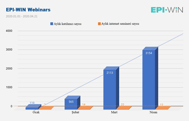 Şekil 2. Ocak 2020'den itibaren DSÖ Salgın Bilgi Ağı (EPI-WIN) amplifikasyon internet seminerleri ve katılımcıları