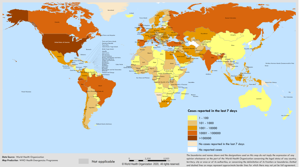 Sayımlar, aksi belirtilmedikçe DSÖ vaka tanımlarına (https://www.who.int/publications-detail/global-surveillance-for-human-infection-with-novel-coronavirus-(2019-ncov) ) dayanarak laboratuvar tarafından onaylanan vakaları ve ölümleri yansıtmakta (bkz. Ülkeye veya bölgeye özgü güncellemeler ve yazım hataları) ve hem ülke içindeki, hem de ülkesine geri gönderilen vakaları içermektedir.