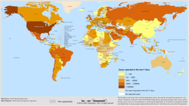Şekil 1. Son yedi gün içinde, ülke veya bölgeye göre bildirilen doğrulanmış COVID-19 vakası sayısı, 12 - 18 Mayıs**