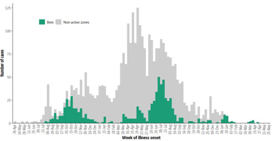 27 Nisan 2020'den bu yana Demokratik Kongo Cumhuriyeti'nin Ituri, Kuzey Kivu ve Güney Kivu İllerinde doğrulanmış yeni bir Ebola virüsü hastalığı (EVH) vakası bildirilmemiştir (Şekil 1).