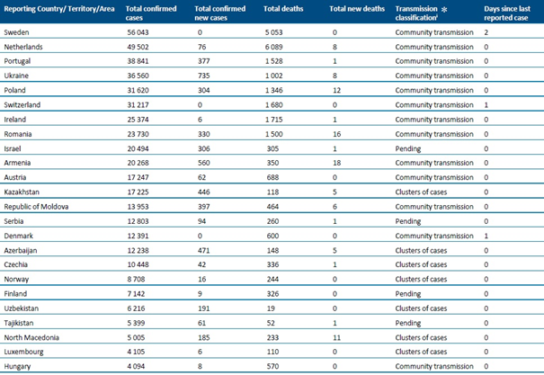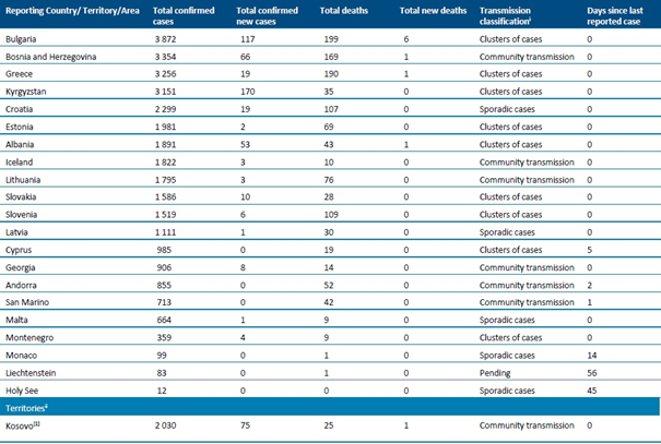 DSÖ Avrupa Bölge Müdürü Dr. Hans Henri P. Kluge, küresel olarak COVID-19 vakalarının %31'inin ve COVID-19 ölümlerinin %43'ünün Avrupa Bölgesi'nde olduğunu paylaşmıştır.