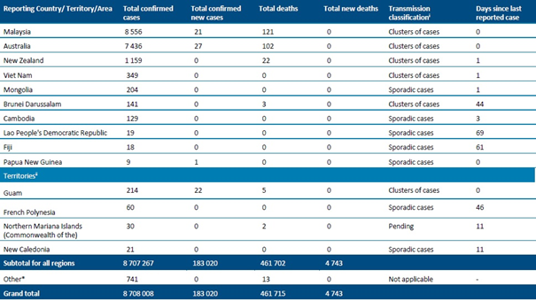 DÜNYA SAĞLIK ÖRGÜTÜ’NÜN 21.06.2020 TARİHLİ YENİ KORONAVİRÜS (COVID-19) DURUM RAPORU
