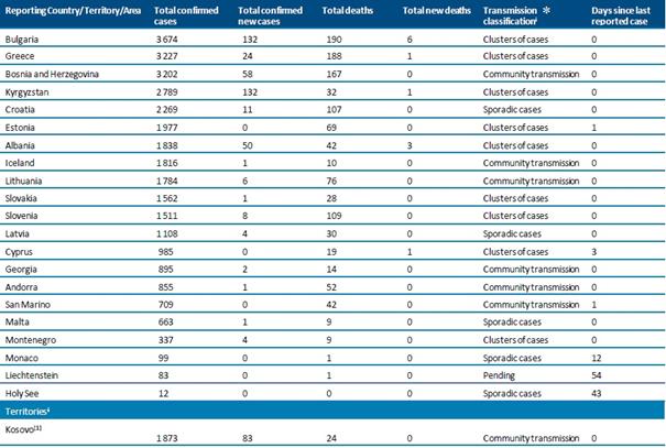 ·19 Haziran 2020 Güncellemesi, Slovenya: Sayılar, ulusal makamlar tarafından geriye dönük olarak düzeltilmiştir: 20 vaka, 17-18 Haziran tarihleri arasındaki verilerden hariç tutulmuştur.