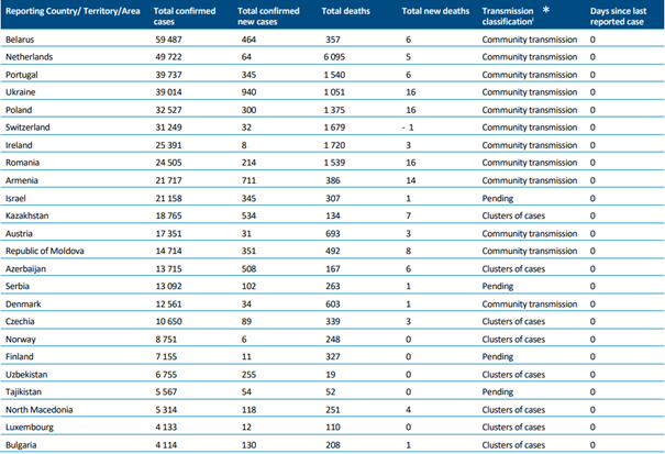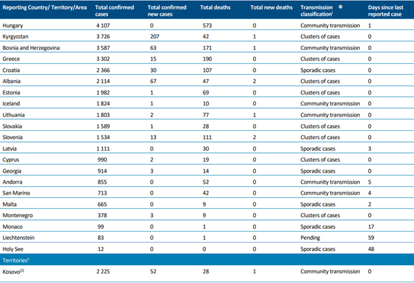 - İsviçre ile ilgili 24 Haziran 2020 tarihli güncelleme: Ulusal makamlar tarafından geriye dönük olarak düzeltilmiş sayılar: 1 vaka toplam vaka sayısından çıkartılmıştır.