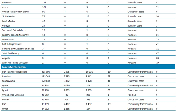 Tablo 1. DSÖ bölgesine göre, laboratuvarda doğrulanmış COVID-19 vakaları ve ölümleri bildirilen ülkeler veya bölgeler. Orta Avrupa Zaman Dilimine göre sabah 10.00 itibarıyla bildirilen veriler, 26 Haziran 2020**