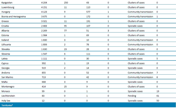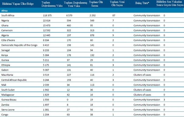 - Beklemede: DSÖ’ye bulaşma sınıflandırmasını henüz rapor etmeyen ülkeler/bölgeler