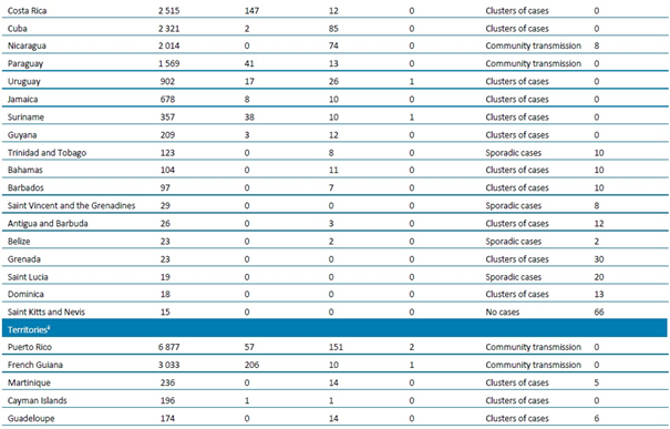 (1) Bulaşma sınıflandırması, ülkelerin/bölgelerin kendilerini raporlama sürecine dayanmaktadır. Sınıflandırmalar, haftalık olarak gözden geçirilmekte ve yeni bilgiler elde edildikçe düzeltilmektedir ve bildirilen en yüksek kategoriye dayanmaktadır. Ülkeler/Bölgeler arasında farklı bulaşma dereceleri olabilir. Kategoriler: