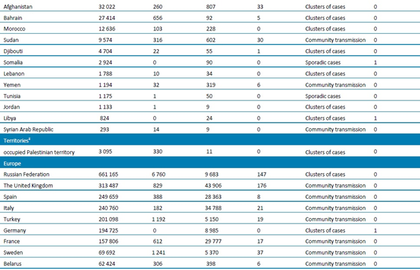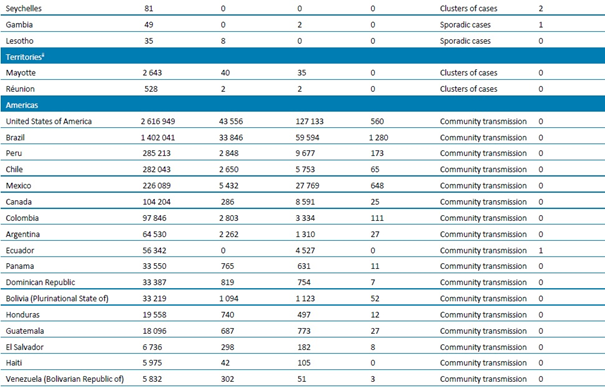 Tablo 1. DSÖ bölgesine göre, laboratuvarda doğrulanmış COVID-19 vakaları ve ölümleri bildirilen ülkeler veya bölgeler. Orta Avrupa Zaman Dilimine göre sabah 10.00 itibarıyla bildirilen veriler, 2 Temmuz 2020**