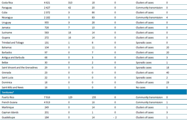 (1) Bulaşma sınıflandırması, ülkelerin/bölgelerin kendilerini raporlama sürecine dayanmaktadır. Sınıflandırmalar, haftalık olarak gözden geçirilmekte ve yeni bilgiler elde edildikçe düzeltilmektedir ve bildirilen en yüksek kategoriye dayanmaktadır. Ülkeler/Bölgeler arasında farklı bulaşma dereceleri olabilir. Kategoriler: