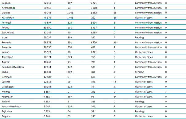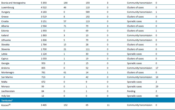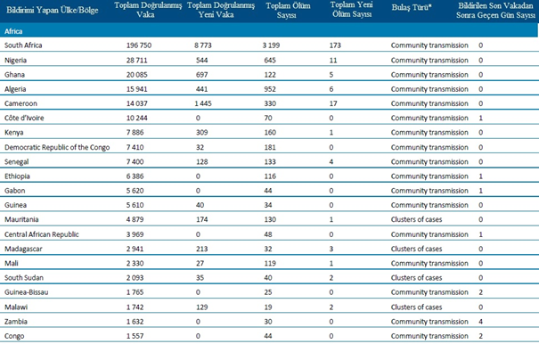 - Beklemede: DSÖ’ye bulaşma sınıflandırmasını henüz rapor etmeyen ülkeler/bölgeler