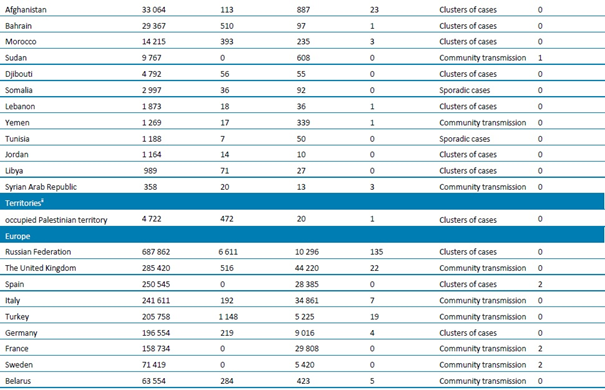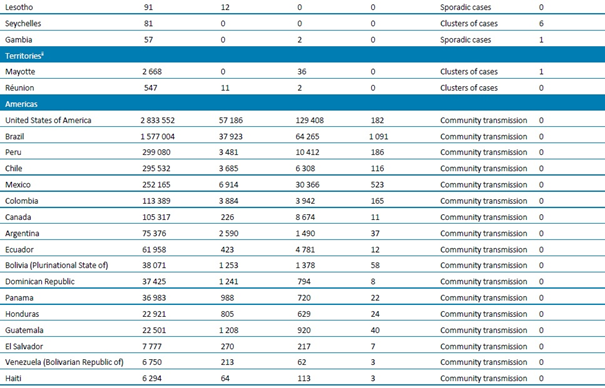 Tablo 1. DSÖ bölgesine göre, laboratuvarda doğrulanmış COVID-19 vakaları ve ölümleri bildirilen ülkeler veya bölgeler. Orta Avrupa Zaman Dilimine göre sabah 10.00 itibarıyla bildirilen veriler, 6 Temmuz 2020**