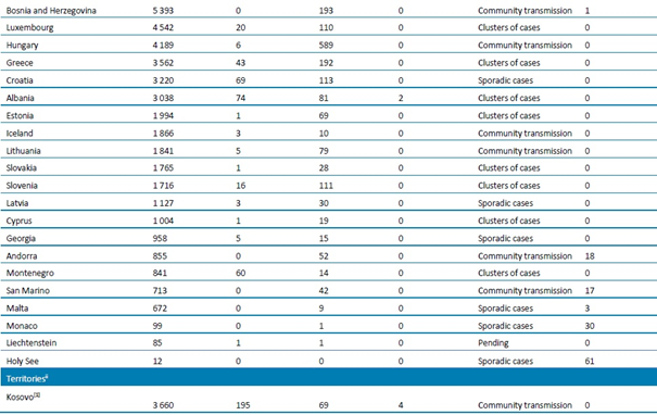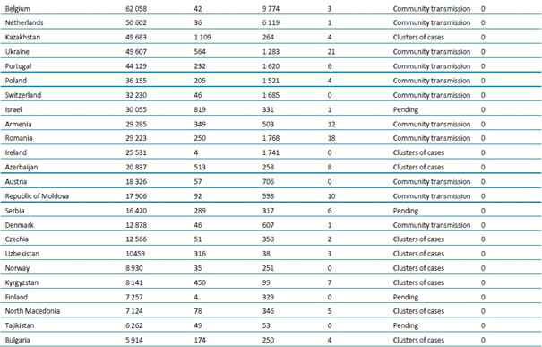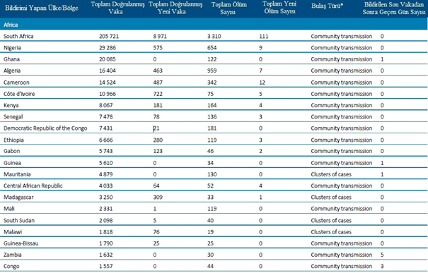 - Beklemede: DSÖ’ye bulaşma sınıflandırmasını henüz rapor etmeyen ülkeler/bölgeler