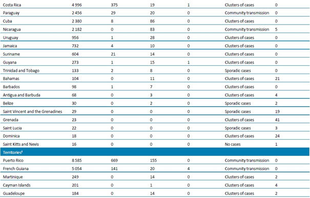 (1) Bulaşma sınıflandırması, ülkelerin/bölgelerin kendilerini raporlama sürecine dayanmaktadır. Sınıflandırmalar, haftalık olarak gözden geçirilmekte ve yeni bilgiler elde edildikçe düzeltilmektedir ve bildirilen en yüksek kategoriye dayanmaktadır. Ülkeler/Bölgeler arasında farklı bulaşma dereceleri olabilir. Kategoriler: