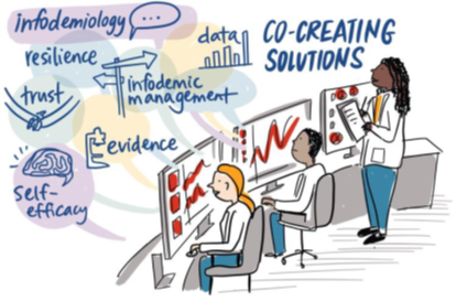 İnfodemi, yani COVID-19 hakkında aşırı miktarda bilginin olması, pandemiye müdahale etmenin çok önemli bir parçasıdır. 7-8 Nisan tarihlerinde DSÖ Salgın Bilgi Ağı (EPI-WIN), disiplinler arası bir uzmanlar grubunun ve 1300'den fazla katılımcının infodemi yönetimi hakkındaki fikirleri kitleselleştirmek için iki günlük, çevrimiçi bir küresel danışma toplantısı düzenlemiştir (https://www.who.int/docs/default-source/coronaviruse/situation-reports/20200415-sitrep-86-covid-19.pdf?sfvrsn=c615ea20_6 ). Toplantı sonucunda, COVID-19 infodemisi ve 50 eylem noktasını yönetmek için bir DSÖ çerçevesi oluşturulmuştur ve yeni infodemi müdahaleleri için bilim ve kanıtları araştırmak, mümkün olduğunca geniş bir yelpazede ilgili disiplinlerden anlayışlar ve yaklaşımlar toplamak için bir takip danışmanlığı yapılması taahhüt edilmiştir (https://www.jmir.org/2020/6/e19659/).