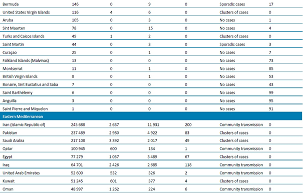 Tablo 1. DSÖ bölgesine göre, laboratuvarda doğrulanmış COVID-19 vakaları ve ölümleri bildirilen ülkeler veya bölgeler. Orta Avrupa Zaman Dilimine göre sabah 10.00 itibarıyla bildirilen veriler, 8 Temmuz 2020**