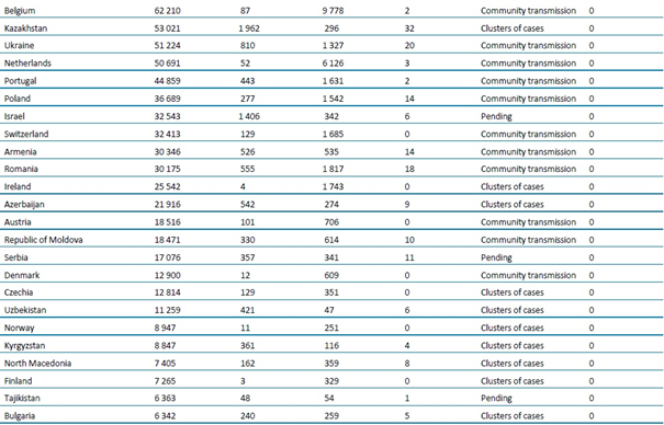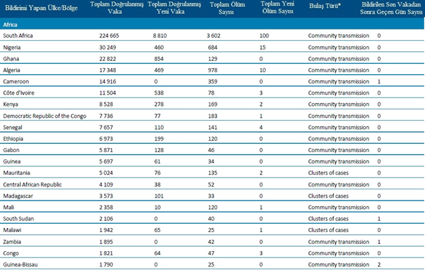 - Beklemede: DSÖ’ye bulaşma sınıflandırmasını henüz rapor etmeyen ülkeler/bölgeler