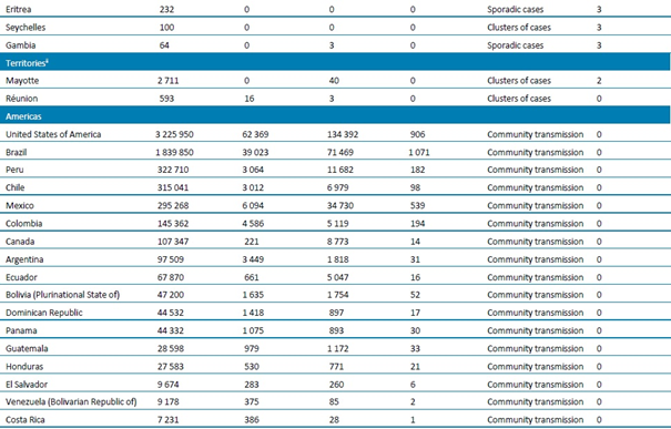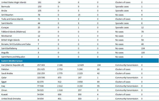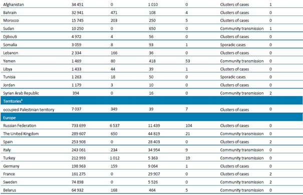 Tablo 1. DSÖ bölgesine göre, laboratuvarda doğrulanmış COVID-19 vakaları ve ölümleri bildirilen ülkeler veya bölgeler. Orta Avrupa Zaman Dilimine göre sabah 10.00 itibarıyla bildirilen veriler, 13 Temmuz 2020**