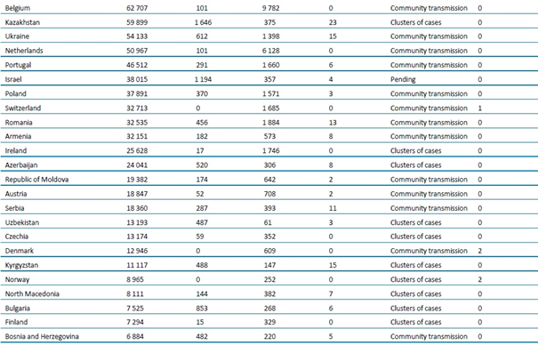 - Beklemede: DSÖ’ye bulaşma sınıflandırmasını henüz rapor etmeyen ülkeler/bölgeler
