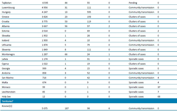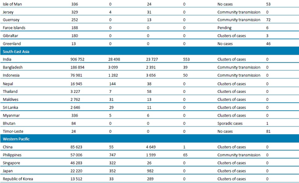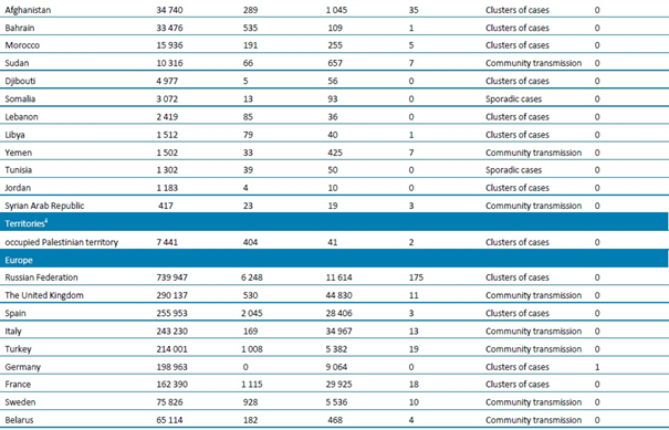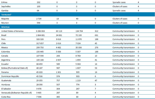 Tablo 1. DSÖ bölgesine göre, laboratuvarda doğrulanmış COVID-19 vakaları ve ölümleri bildirilen ülkeler veya bölgeler. Orta Avrupa Zaman Dilimine göre sabah 10.00 itibarıyla bildirilen veriler, 14 Temmuz 2020**