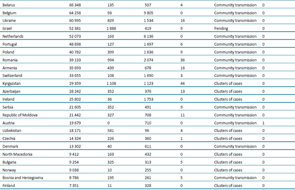 - Güncelleme, 22 Temmuz 2020, Belçika: Sayımlar, ulusal makamlar tarafından geriye dönük olarak düzeltilmiştir: 3 Mart ile 21 Temmuz arasındaki vaka ve ölüm sayıları düzeltilmiştir.