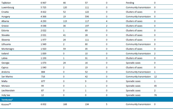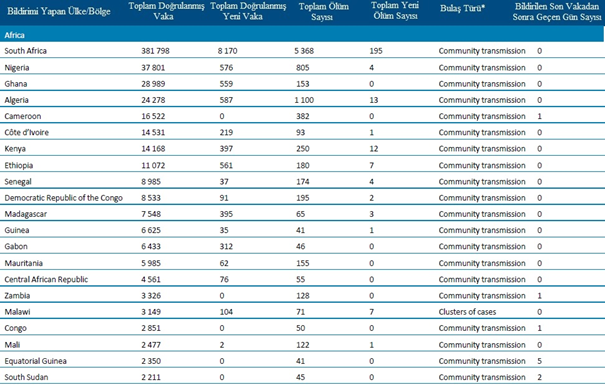 - Beklemede: DSÖ’ye bulaşma sınıflandırmasını henüz rapor etmeyen ülkeler/bölgeler
