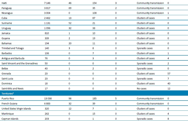 (1) Bulaşma sınıflandırması, ülkelerin/bölgelerin kendilerini raporlama sürecine dayanmaktadır. Sınıflandırmalar, haftalık olarak gözden geçirilmekte ve yeni bilgiler elde edildikçe düzeltilmektedir ve bildirilen en yüksek kategoriye dayanmaktadır. Ülkeler/Bölgeler arasında farklı bulaşma dereceleri olabilir. Kategoriler: