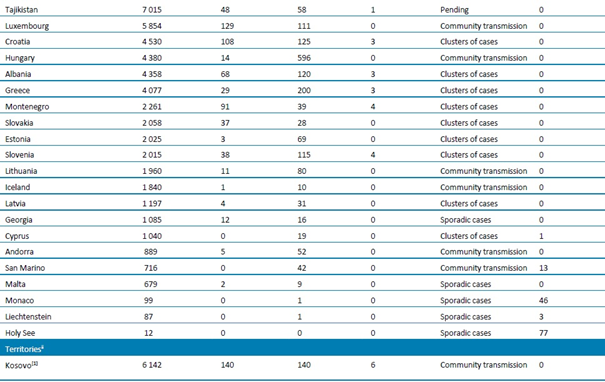 - Güncelleme, 23 Temmuz 2020, Karadağ: Sayımlar, ulusal makamlar tarafından geriye dönük olarak düzeltilmiştir: 15-22 Temmuz arasındaki vaka ve ölüm sayıları düzeltilmiştir.