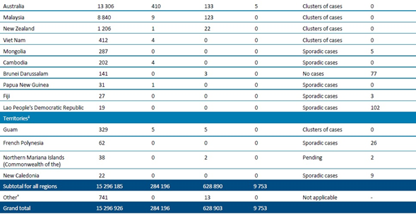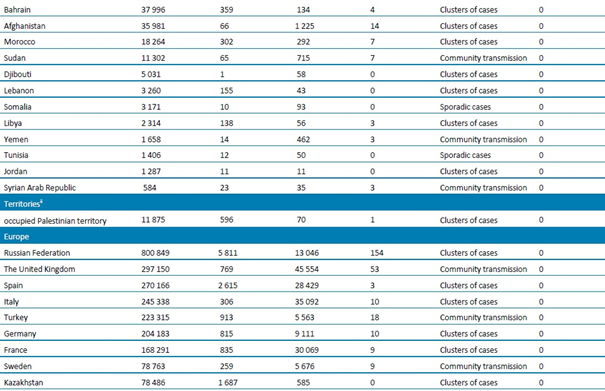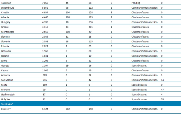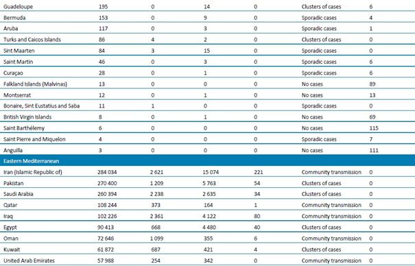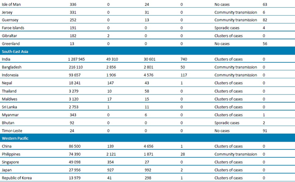 Tablo 1. DSÖ bölgesine göre, laboratuvarda doğrulanmış COVID-19 vakaları ve ölümleri bildirilen ülkeler veya bölgeler. Orta Avrupa Zaman Dilimine göre sabah 10.00 itibarıyla bildirilen veriler, 24 Temmuz 2020**