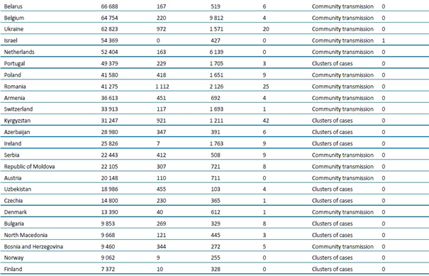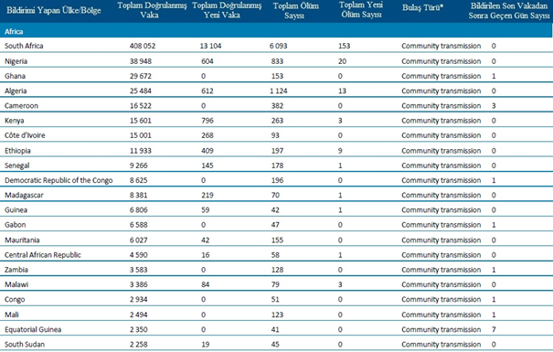 - Beklemede: DSÖ’ye bulaşma sınıflandırmasını henüz rapor etmeyen ülkeler/bölgeler