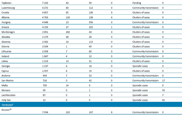 - Güncelleme, 27 Temmuz 2020, Karadağ: Sayımlar, ulusal makamlar tarafından geriye dönük olarak düzeltilmiştir: vaka ve ölüm sayıları 19 Mart-1 Nisan, 9 Mayıs ve 14 Haziran-26 Temmuz tarihleri arasında ayarlanmıştır.