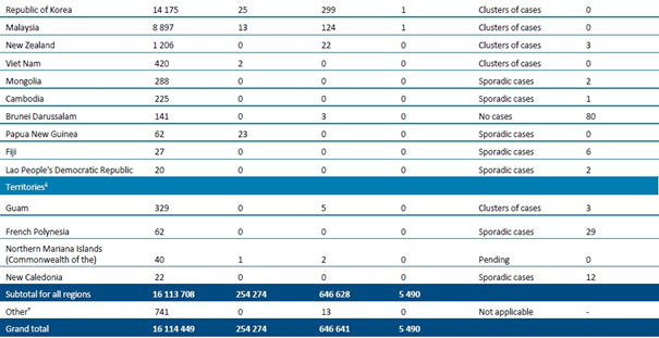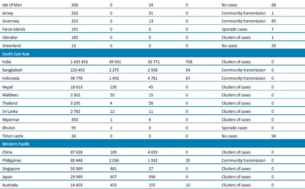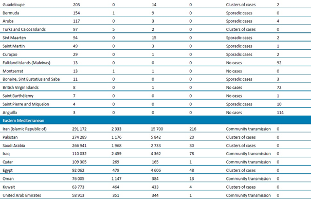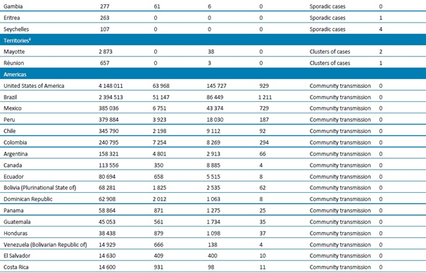 Tablo 1. DSÖ bölgesine göre, laboratuvarda doğrulanmış COVID-19 vakaları ve ölümleri bildirilen ülkeler veya bölgeler. Orta Avrupa Zaman Dilimine göre sabah 10.00 itibarıyla bildirilen veriler, 27 Temmuz 2020**