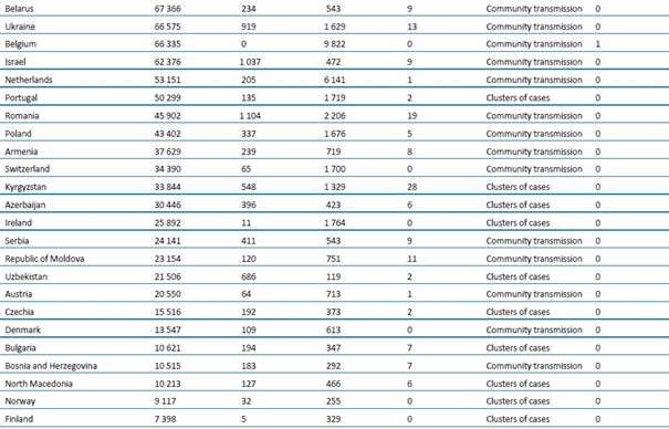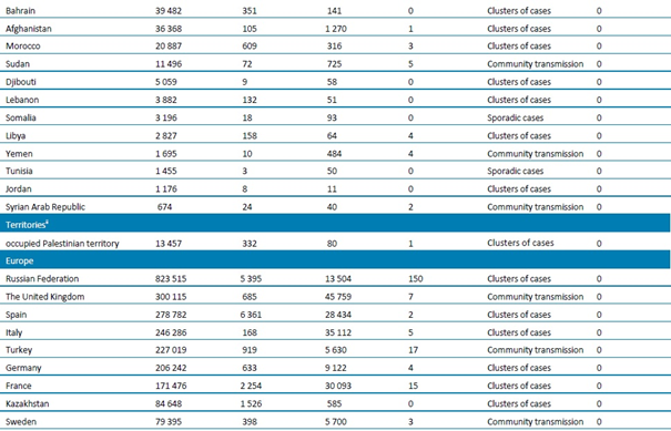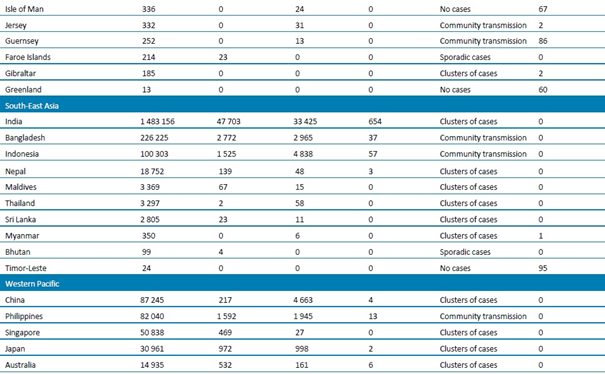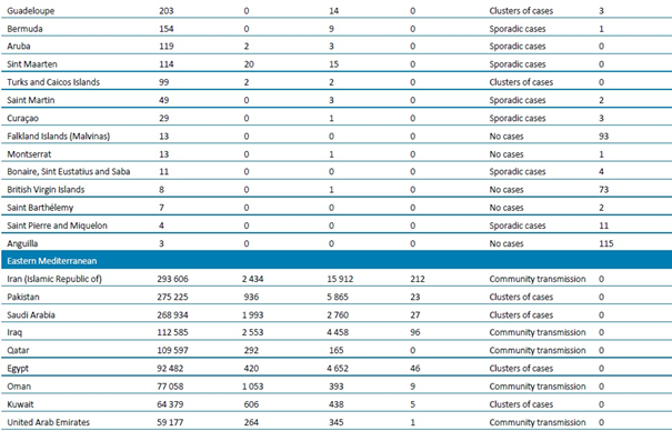 Tablo 1. DSÖ bölgesine göre, laboratuvarda doğrulanmış COVID-19 vakaları ve ölümleri bildirilen ülkeler veya bölgeler. Orta Avrupa Zaman Dilimine göre sabah 10.00 itibarıyla bildirilen veriler, 28 Temmuz 2020**