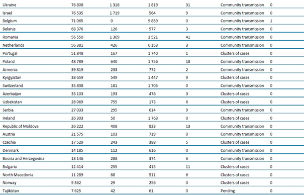 *Az sayıda ülke/bölge/alan kombine şüpheli ve laboratuvar tarafından doğrulanmış vakaları birlikte rapor etmektedir; bunları veri tablosunda göstermek için tanımlama çabaları devam etmektedir.