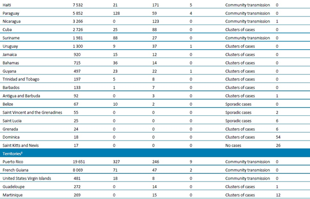 (1) Bulaşma sınıflandırması, ülkelerin/bölgelerin kendilerini raporlama sürecine dayanmaktadır. Sınıflandırmalar, haftalık olarak gözden geçirilmekte ve yeni bilgiler elde edildikçe düzeltilmektedir ve bildirilen en yüksek kategoriye dayanmaktadır. Ülkeler/Bölgeler arasında farklı bulaşma dereceleri olabilir. Kategoriler: