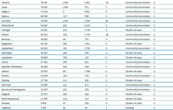 *Az sayıda ülke/bölge/alan kombine şüpheli ve laboratuvar tarafından doğrulanmış vakaları birlikte rapor etmektedir; bunları veri tablosunda göstermek için tanımlama çabaları devam etmektedir.