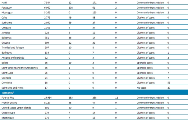(1) Bulaşma sınıflandırması, ülkelerin/bölgelerin kendilerini raporlama sürecine dayanmaktadır. Sınıflandırmalar, haftalık olarak gözden geçirilmekte ve yeni bilgiler elde edildikçe düzeltilmektedir ve bildirilen en yüksek kategoriye dayanmaktadır. Ülkeler/Bölgeler arasında farklı bulaşma dereceleri olabilir. Kategoriler: