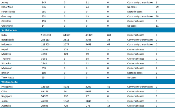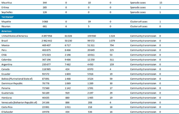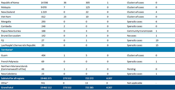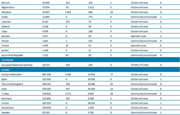 Tablo 1. DSÖ bölgesine göre, laboratuvarda doğrulanmış COVID-19 vakaları ve ölümleri bildirilen ülkeler veya bölgeler. Orta Avrupa Zaman Dilimine göre sabah 10.00 itibarıyla bildirilen veriler, 9 Ağustos 2020**