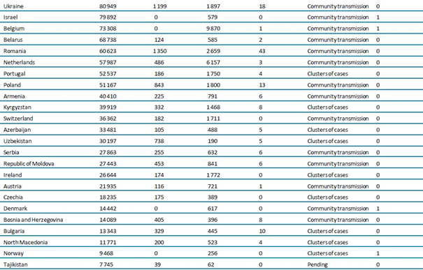 *Az sayıda ülke/bölge/alan kombine şüpheli ve laboratuvar tarafından doğrulanmış vakaları birlikte rapor etmektedir; bunları veri tablosunda göstermek için tanımlama çabaları devam etmektedir.