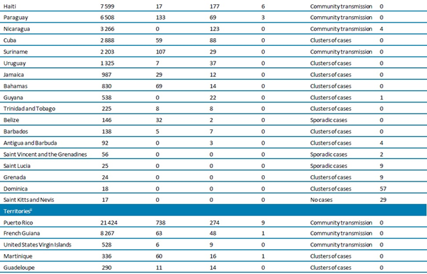 (1) Bulaşma sınıflandırması, ülkelerin/bölgelerin kendilerini raporlama sürecine dayanmaktadır. Sınıflandırmalar, haftalık olarak gözden geçirilmekte ve yeni bilgiler elde edildikçe düzeltilmektedir ve bildirilen en yüksek kategoriye dayanmaktadır. Ülkeler/Bölgeler arasında farklı bulaşma dereceleri olabilir. Kategoriler: