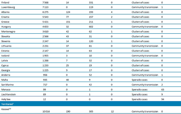 (2) Kosova'ya yapılan tüm atıflar Birleşmiş Milletler Güvenlik Konseyi'nin 1244 (1999) sayılı kararı bağlamında anlaşılmalıdır. Haritada Sırbistan ve Kosova vakalarının sayısı (UNSCR 1244, 1999) görselleştirme amacıyla hazırlanmıştır.