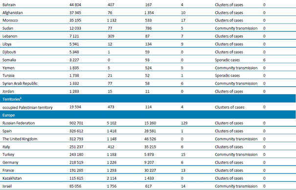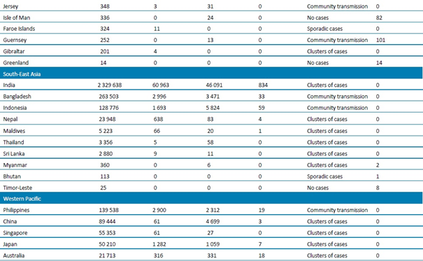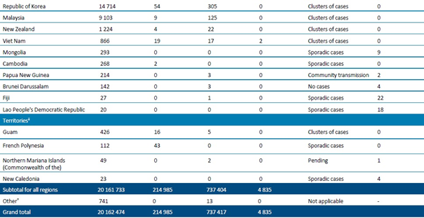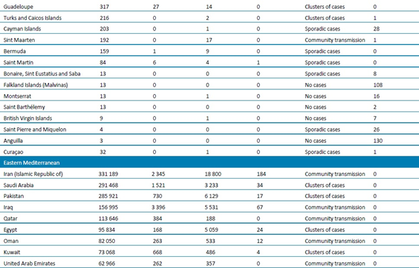 Tablo 1. DSÖ bölgesine göre, laboratuvarda doğrulanmış COVID-19 vakaları ve ölümleri bildirilen ülkeler veya bölgeler. Orta Avrupa Zaman Dilimine göre sabah 10.00 itibarıyla bildirilen veriler, 12 Ağustos 2020**