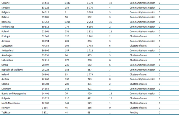*Az sayıda ülke/bölge/alan kombine şüpheli ve laboratuvar tarafından doğrulanmış vakaları birlikte rapor etmektedir; bunları veri tablosunda göstermek için tanımlama çabaları devam etmektedir.