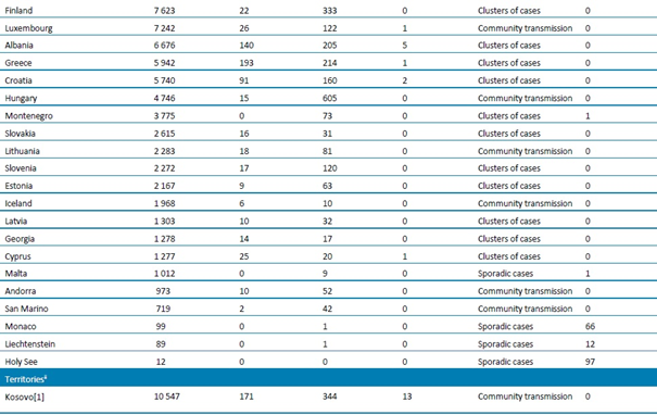 (2) Kosova'ya yapılan tüm atıflar Birleşmiş Milletler Güvenlik Konseyi'nin 1244 (1999) sayılı kararı bağlamında anlaşılmalıdır. Haritada Sırbistan ve Kosova vakalarının sayısı (UNSCR 1244, 1999) görselleştirme amacıyla hazırlanmıştır.