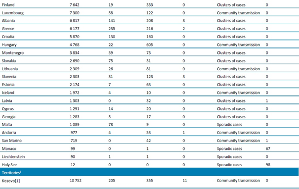 - Güncelleme, 13 Ağustos 2020, Bosna Hersek: Sayımlar, ulusal yetkililer tarafından geriye dönük olarak düzenlenmiş: 11-12 Ağustos arasındaki vaka ve ölüm sayıları düzenlenmiştir.