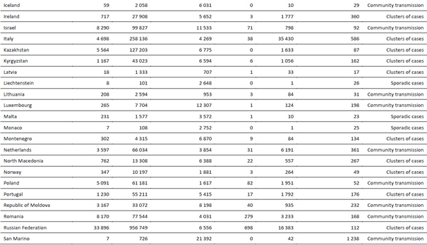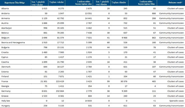 Bölgedeki ülkeler vakalarda yeniden artış bildirmeye devam ederken, Hırvatistan, Polonya, Ukrayna, Çekya ve Moldova dahil olmak üzere bazı ülkeler son yedi günde rekor düzeyde yüksek rakamlar bildirmiştir (Tablo 5).