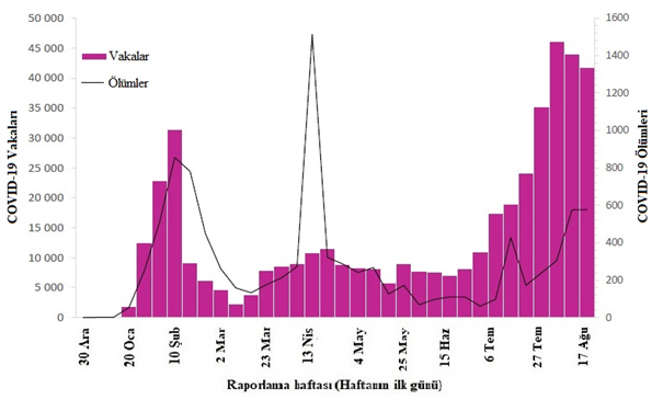 23 Ağustos'ta sona eren haftada, bir önceki haftaya (10-16 Ağustos) göre vaka sayısında %4 azalma ve ölüm sayısında %5 artış ile, 1,7 milyondan fazla yeni COVID-19 vakası ve 39.000 yeni ölüm bildirilmiştir.