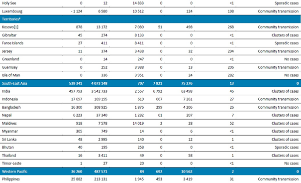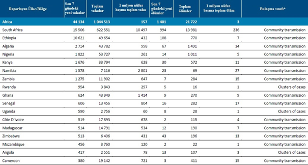 - Beklemede: DSÖ’ye bulaşma sınıflandırmasını henüz rapor etmeyen ülkeler/bölgeler
