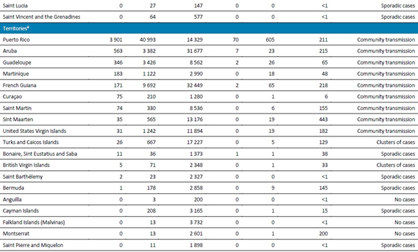 (*) Bulaşma sınıflandırması, ülkelerin/bölgelerin kendilerini raporlama sürecine dayanmaktadır. Sınıflandırmalar, haftalık olarak gözden geçirilmekte ve yeni bilgiler elde edildikçe düzeltilmektedir ve bildirilen en yüksek kategoriye dayanmaktadır. Ülkeler/Bölgeler arasında farklı bulaşma dereceleri olabilir. Kategoriler: