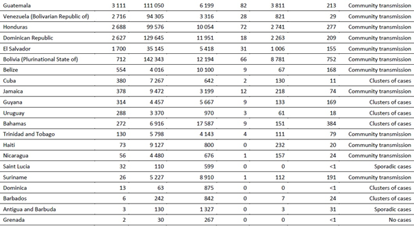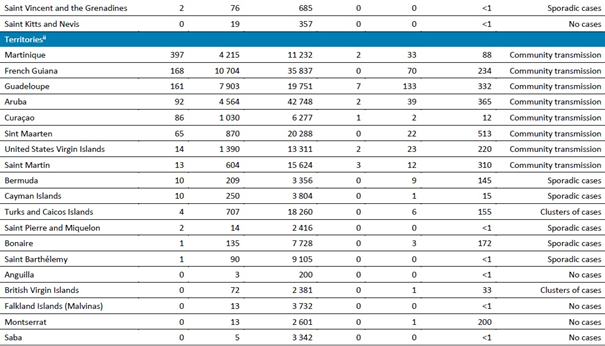 (*) Bulaşma sınıflandırması, ülkelerin/bölgelerin kendilerini raporlama sürecine dayanmaktadır. Sınıflandırmalar, haftalık olarak gözden geçirilmekte ve yeni bilgiler elde edildikçe düzeltilmektedir ve bildirilen en yüksek kategoriye dayanmaktadır. Ülkeler/Bölgeler arasında farklı bulaşma dereceleri olabilir. Kategoriler: